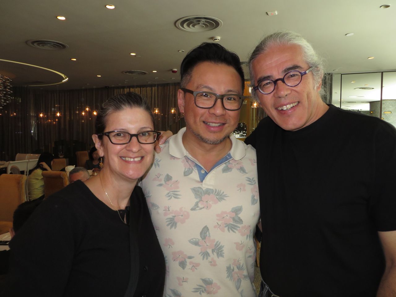 With wife, Bini, and cousin, fashion designer Barney Cheng, in Hong Kong.