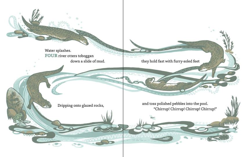otters spread Published October 29, 2018 at 1400 × 893 in Cover Reveal: FOUR OTTERS TOBOGGAN: An Animal Counting Book