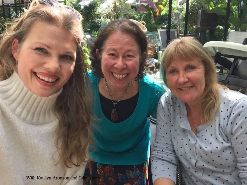 Katelyn Julie and Viv at coffee shop in Switzerland Published December 9, 2019 at 960 × 720 in 2019: A Look Back – A Look Ahead – A Book Blog Tour – And More Katelyn Aronson, Julie Abery and me at flower shop cafe in Switzerland