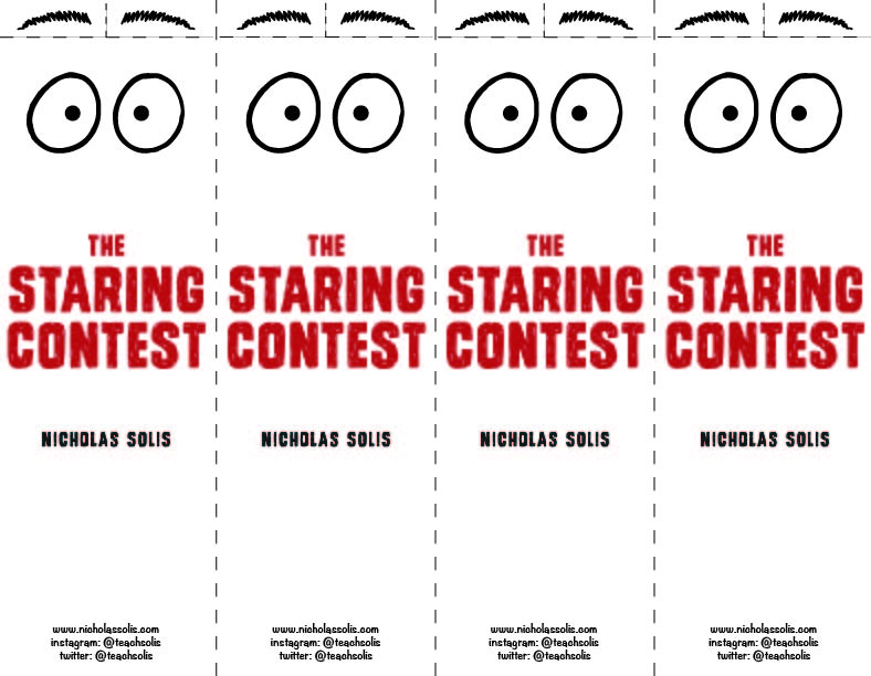 Oh, my! I just had to try to win against the cover. Nope. Great idea! Kids will love it! Congrats! One of my favorite childhood games was Chinese jump rope. We spent HOURS at recess playing. I have no idea how we got through all of those levels. I imagine kids will spend just as much time trying to win in the staring contest. 🙂