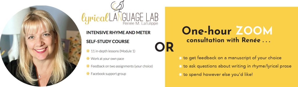 13. A 60-minute Zoom manuscript consultation OR a Seat in the Lyrical Language Lab Rhyme and MeterSelf-Study Course from the incredible Renee LaTulippe