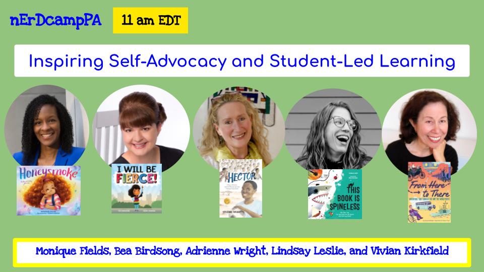 I hope everyone is set to have a wonderful weekend. I’m leaving tomorrow for a week at an Air B&B on Lake Winnipesaukee – looking forward to doing lots of writing – and I’m also participating in Nerd Camp PA…are you signed up? It’s on July 15 and it’s for educators and librarians and parents and students. It’s all about literacy and encouraging kids to love books – to find topics that rock their boats and then discover books that can help them learn more – to find books where they are validated because they see themselves – to find books that are a window to the wider world so they can connect with other cultures. There are dozens of awesome author/illustrator panels – my panel is speaking about Using Picture Books to Inspire Self-Advocacy and Student-Led Learning.