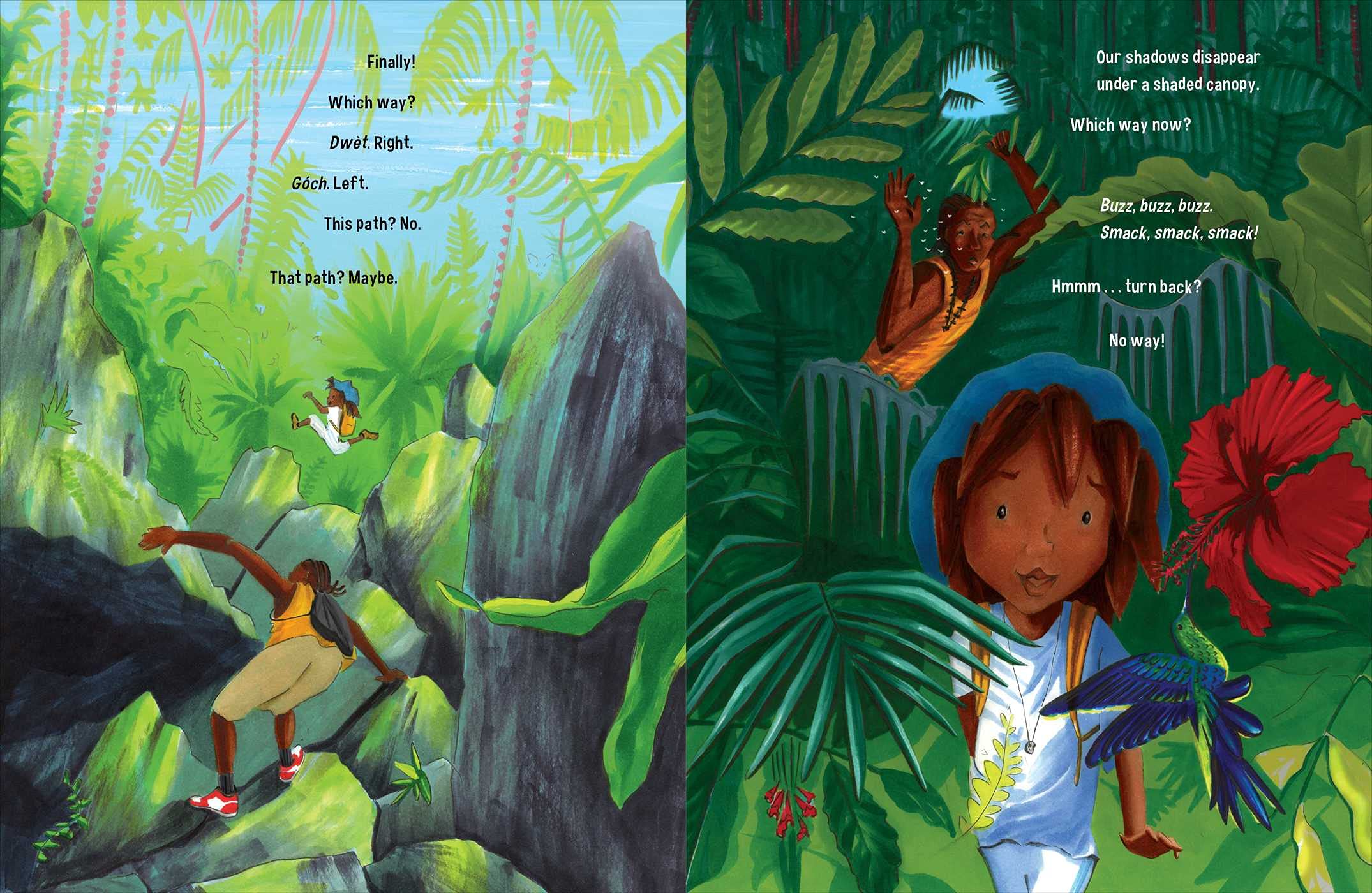 Baptiste Paul and Jacqueline Alcántara (co-creators of The Field) have teamed up again! Baptiste’s humorous and tender text, with a sprinkling of Creole words straight from the Pitons, and Jacqueline Alcántara’s vibrant and evocative illustrations capture the wonder and emotions experienced on the trail and the special relationship between a parent and a child.