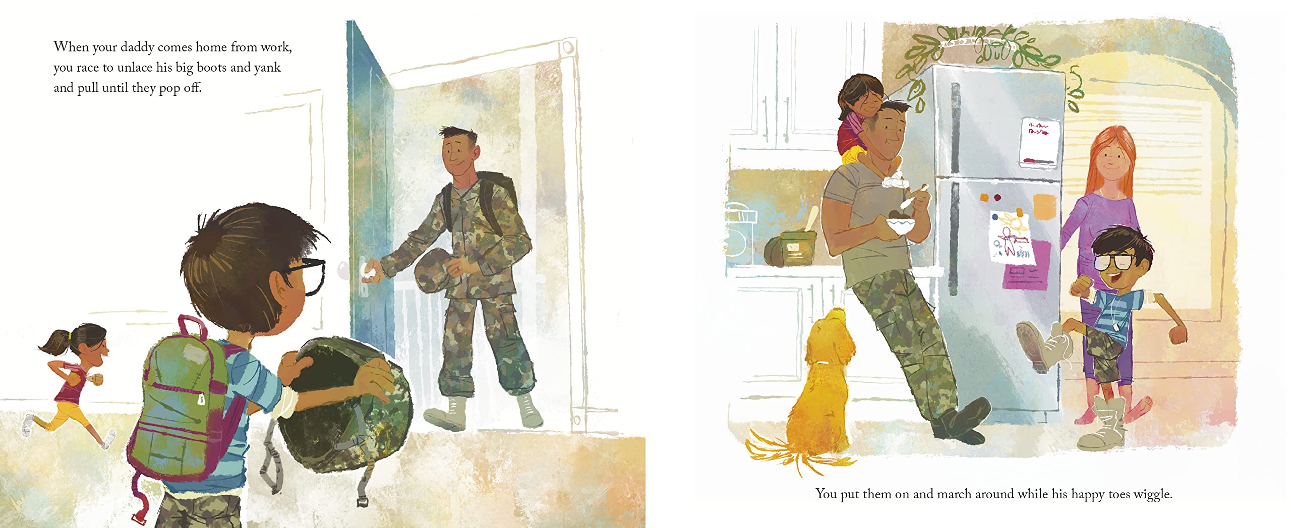 • Yes, thank you, Sue. I think the story will resonate with families who endure separations for lots of reasons as well–families of forest fighters, rescue workers, first responders, frontline workers in the pandemic, the list unfortunately can go on and on. So many children and their families have a lot to adjust to when a parent serves.