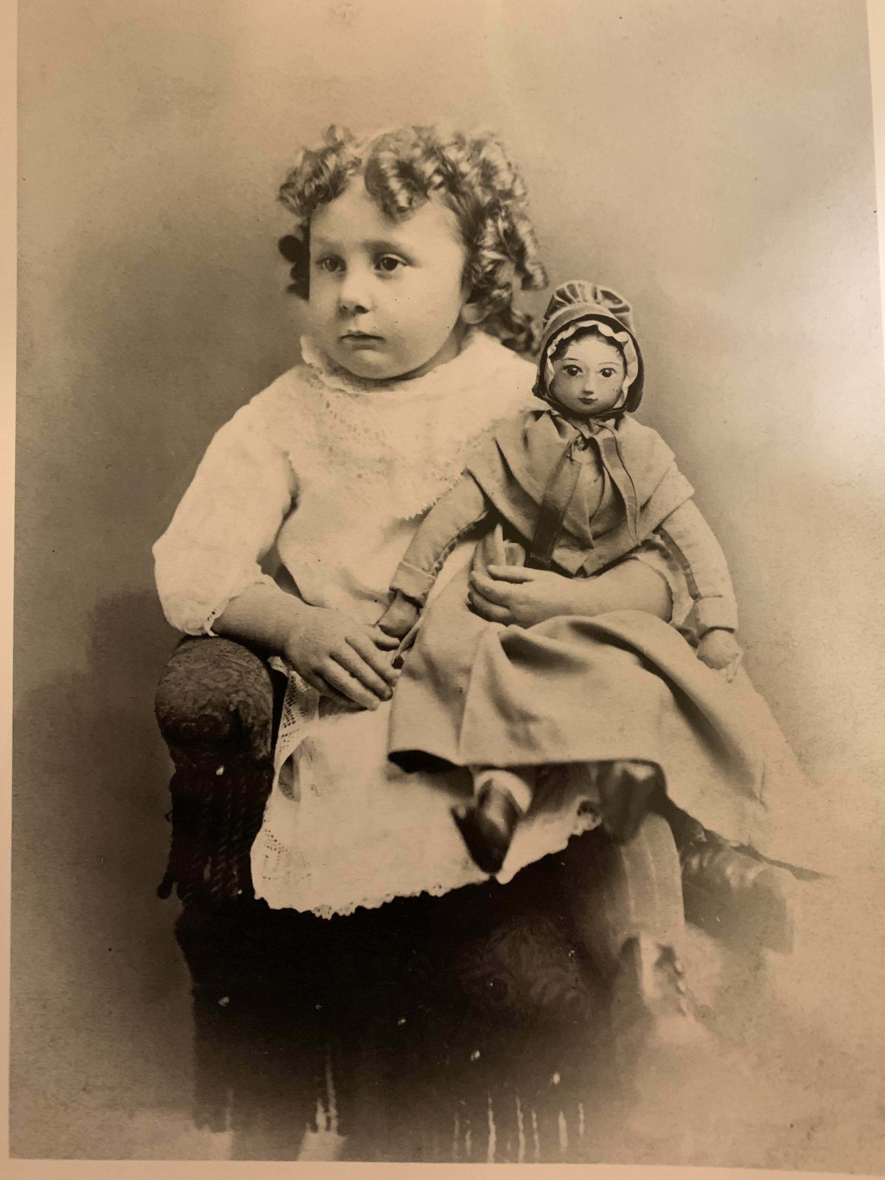Little Annie Williams Langley (circa 1882), one of the many little girls in the Williams family who owned the Polly Sumner doll.