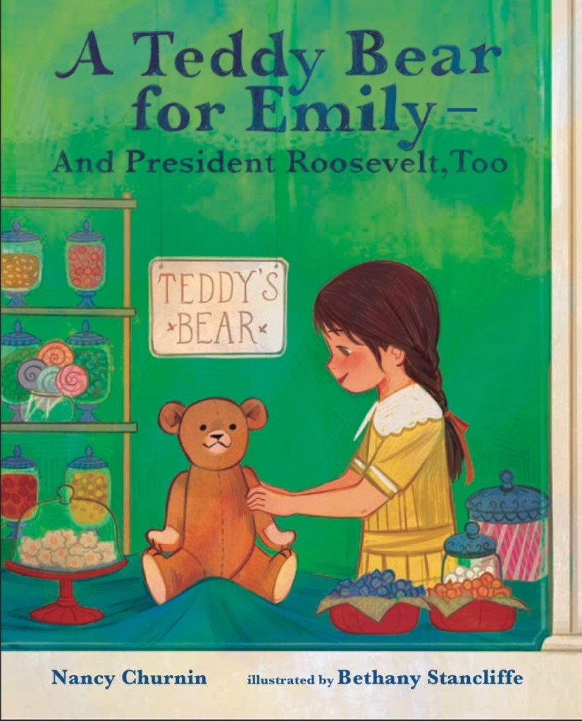 Teddy Bears! I’ll bet just about all of us have had at least one. And today, children still hold them close to their hearts – in times of joy and in moments of sadness or fear. But how and when did these cuddly stuffed toys come about? Great question…and the answer lies in Nancy Churnin’s upcoming picture book, A TEDDY BEAR FOR EMILY…And President Roosevelt, Too! And TODAY we are revealing the cover and posting pre-order links.