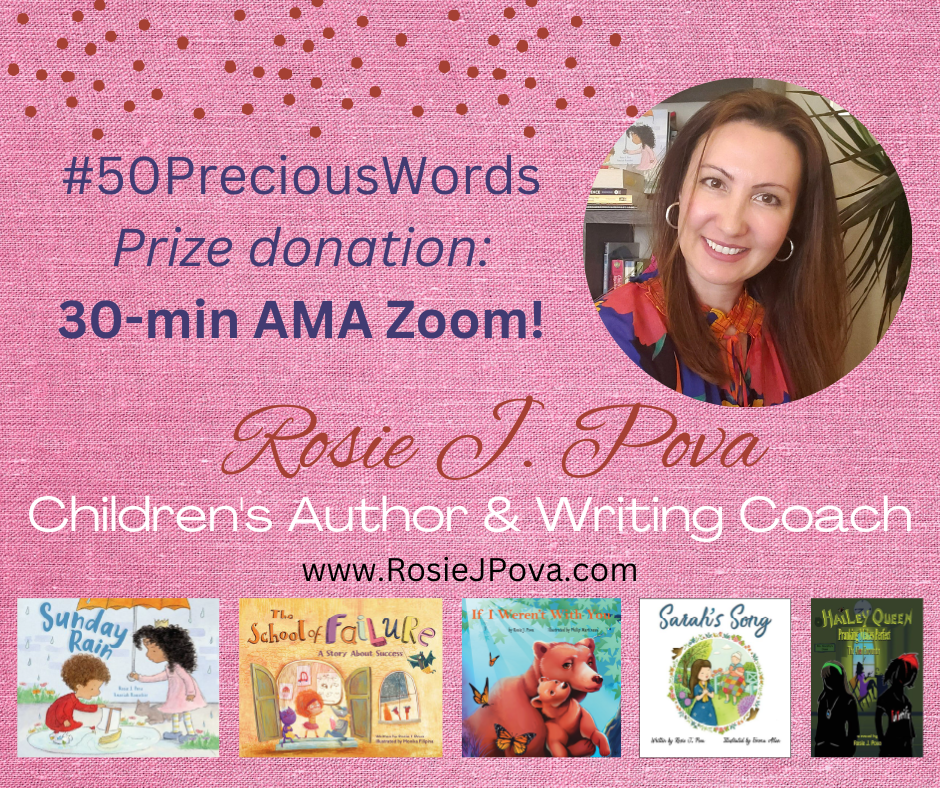 8. On March 2nd or March 3rd, post your story in the comments of this post. If you have a blog of your own and want to post it there also, that is terrific…please add the link to your comment so we can all go and visit you there. But please make sure you put your entry in the comments of this #50PRECIOUSWORDS 2024 CONTEST IS OPEN post, even if you are posting it on your blog. I love everyone sharing about the contest on social media and I love the amazing graphics some folks create with their entries on social media, but no matter where else you put your story, make sure you put the contest entry (words only) with title and your name in the comment section of THIS POST.