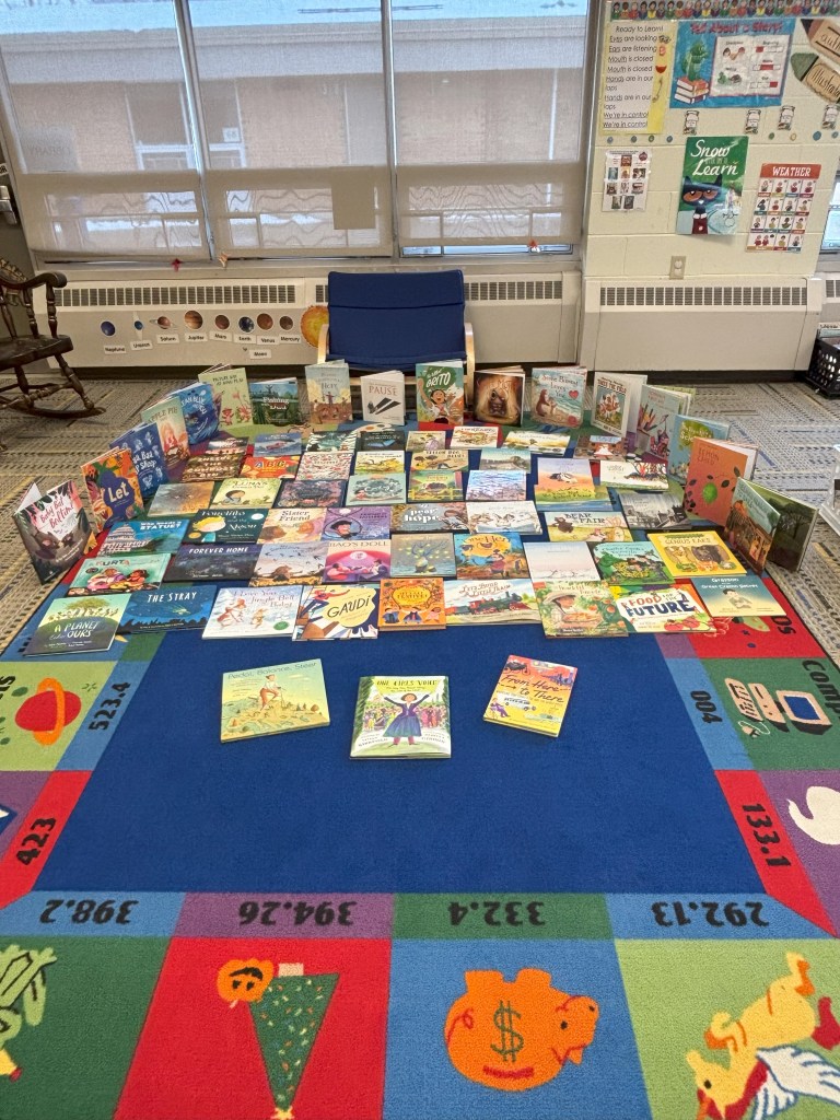 I also created something new a couple of years ago – a #50PreciousWords Literacy Initiative! I asked participants to purchase a children’s book from one of my local indie bookstores. And because of the generosity of this amazing kid-lit community, over the past three years we were able to deliver 1000 brand-new books to local schools in need. And this year, we have a two-pronged approach to delivering beautiful new books…I’ve partnered with CLiF, the Children’s Literacy Foundation, a nonprofit which provides grants to New Hampshire and Vermont schools in need for author visits and books! We will be using Toadstool Books in Keene, New Hampshire to purchase books – and they will deliver them to CLiF headquarters. Plus, for any books that authors mail directly to me, CLiF has connected me with Sunset Heights Elementary School in Nashua. I’ve already delivered over 100 books last week – these were late arrivals from last year’s generous donors – plus brand new children’s books mailed to me by publishers. Here’s a few words from Stacey Grigas-Lewis, the library media specialist: