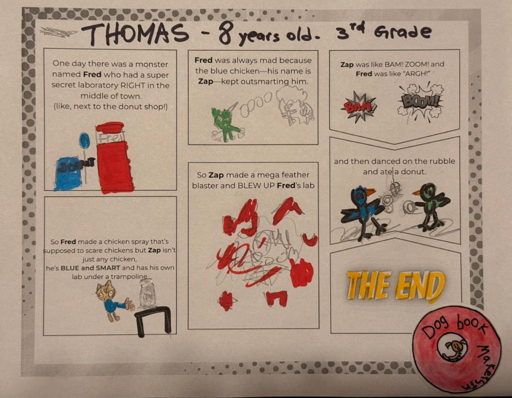 Love these stories! They remind me how brilliant kids are. I mean, a blue chicken whose lab is under a trampoline? It doesn’t get any more creative than that!