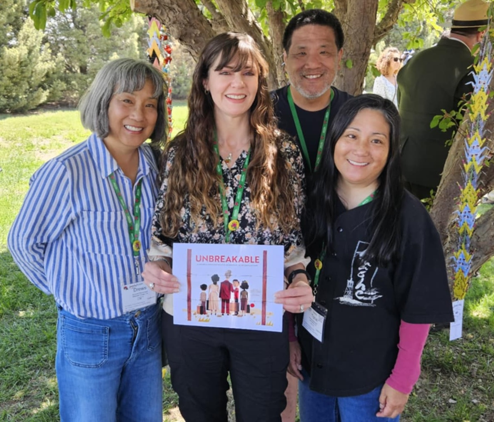 As a teacher, I’ve taught the history of Japanese American Incarceration Camps for the last 25+ years, and when my friend Dan Yoshii learned of my interest, he introduced me to Minoru “Min” Tonai. Min had been sent to Amache with his mother and siblings while his father was held unjustly by the FBI. The more I talked to Min, the more I became determined that his story should be shared widely. We started working together in 2017 and in 2023, we signed the contract for Unbreakable: A Japanese American Family in an American Incarceration Camp, edited by Meredith Mundy and published by Abrams Books. Min helped choose our amazing illustrator, Chris Sasaki, but Min passed away in September of 2023. I wish he were still with us but am so thankful that he knew his story would live on. Min’s adult children and I have been working together since then, with Min’s words guiding us: “We were prisoners of our own country, though we were not guilty of any crime, just our ancestry. There was no justice for us. I can’t get over it because it was wrong and I have to make sure that it never happens again to anyone else. I’m not afraid to speak up. The experience we had has determined me that no one else should ever, ever experience that again.” –Minoru Tonai