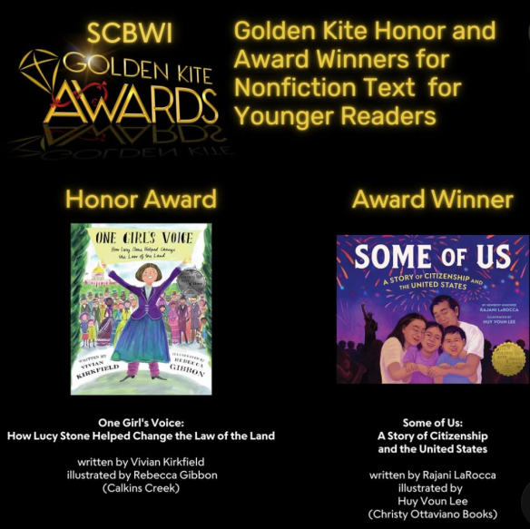 My books have earned six starred trade reviews, been chosen as Junior Library Guild Selections, and received awards such as Outstanding Science Trade Book, Best STEM Book, Cook Prize Honor Book, Mathical Honor Book, AAAS/Subaru Prize Longlist, and Parents’ Choice Gold Medal.
