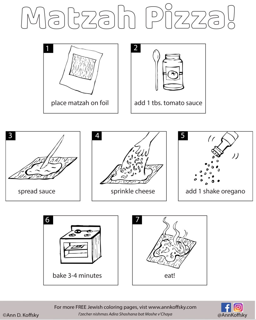 I’ve included the recipe for Matzah Pizza in the book, and in this post too. It’s super simple.