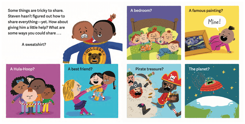 At the same time, Steven is very earnest in his desire to share. Sharing becomes a puzzle that he’s trying to figure out – with a little help from the other characters in the book, and the reader. I hope it’s a puzzle that readers will have fun solving with Steven, and in their own lives.