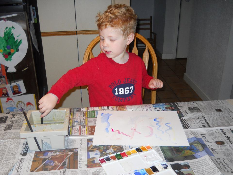 3. Let your child paint several pictures using different size brushes and/or Q-tips.