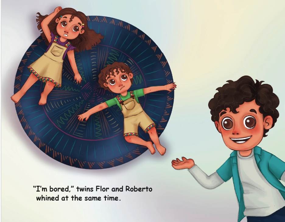 I looked at him – remember he was seven – and asked what was his idea. Well, I can say it was brilliant, because it wasn’t my idea. Simon told me that in this next book Flor and Roberto would be bored again, but this time they would write a book themselves.