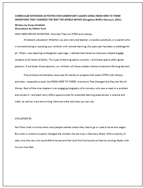 FROM HERE TO THERE: INVENTIONS THAT CHANGED THE WAY THE WORLD MOVES (Houghton Mifflin Harcourt, January 19, 2021)