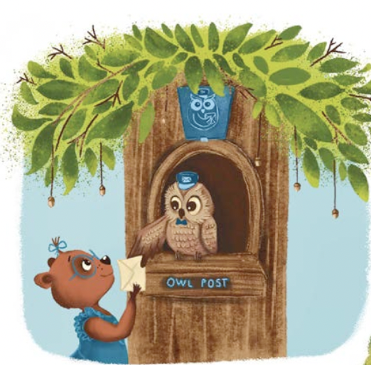 MELISSA: It has been a dream working with Sandra Sutter and her team at Gnome Road Publishing! And Anita’s illustrations are absolutely stunning and capture all the emotions the characters feel such as disappointment, longing, happiness, and more. I especially appreciate all the details she includes, and I love that she shows Mabel moving away in a hot air balloon. Too cute! And she illustrates how Hazel and Mabel send their letters back and forth – through an Owl Post – truly adorable!