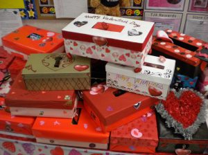 Memories of special people, places and experiences are extremely important for all of us.  Help your child start a box of treasured mementos now!  The boxes in the pictures below were actually made as Valentine’s Day mailboxes by the people I work with, so each of these boxes has a slit for Valentine’s Day cards to be inserted into…your child’s treasure box won’t have the slit.  I was so impressed with the effort and creativity of these adults, I wanted to share some of the boxes with all of you.